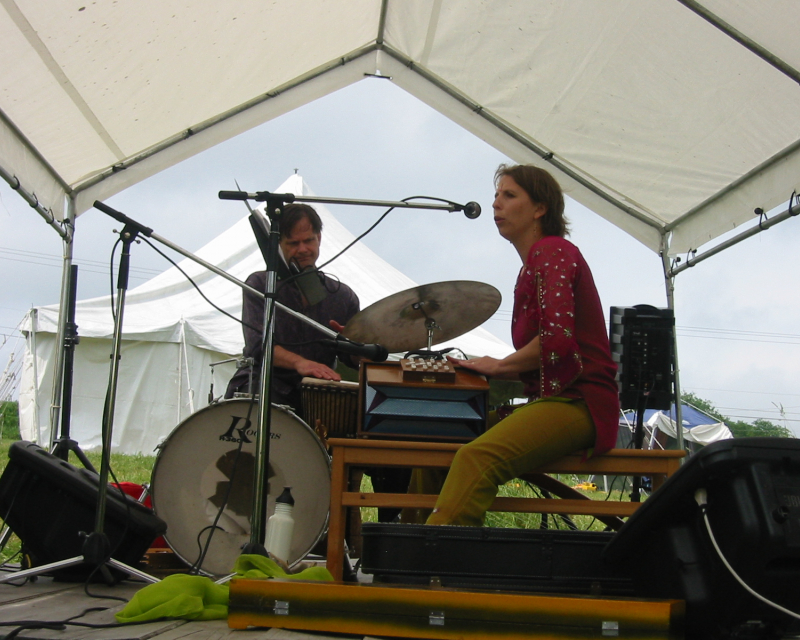 We also have a synthesizer -- nothing fancy; it comes from Radio Shack -- and a Korg WAVE drum, an electronic drum used on "A prayer to Brighid in times of violence." We try not to over-use the synthetic instruments, however; there are a lot of techno musicians out there who can use them more effectively than us.